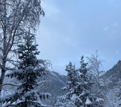 Сам отель небольшой, что особо радует. Уютно, чисто, атмосферно. Доброжелательный приветливый персонал. Ирина администратор всегда готова помочь и ответить на все вопросы. Самое главное - это горячая вода в отеле, забронировав другую гостиницу первоначально, а только потом изучив отзывы, поняла, что горячая вода это проблема в некоторых отелях. А еще отопление, кое-где люди сидят в номерах с обогревателем. Мы спали с открытым окном. Тепло, комфортно, приятный вид из окна. Все очень чисто, современный ремонт. В номере есть все необходимое - халаты, тапочки, принадлежности для личной гигиены, фен. Холодильник, чайник, чай/кофе/сахар. Уборка в номере , что тоже немаловажно (по опыту бывает, что нужно напомнить даже мусор вынести). На территории отеля есть горячие чаны , уютная крытая беседка с камином. На улице деревянные лежаки с костром по вечерам. Рядом горы, утром приятно попить чай в беседке и посмотреть на ледник и склоны осенних гор. Мы были в период с 15 по 17 октября. Завтраки это особый респект. Очень вкусно, разнообразно. Для меня лично приятно, что в меню есть овощи. И чайники с горным чаем. Красивая керамическая посуда. Особое спасибо за выпечку, все чудесно и приготовлено с душой. Обязательно вернёмся сюда снова ! И будем рекомендовать друзьям.