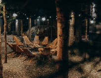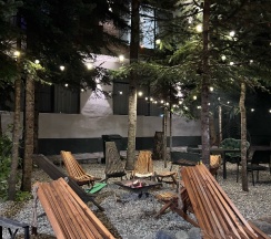 Просторный номер с балконом и видом на ёлки выглядел очень уютно, но расположение рядом с костровой зоной и чанами оказалось неприятным сюрпризом. Каждый вечер дым и запах гари от этих зон проникали в номер, что существенно портило впечатление и даже вызывало головную боль. Кровать большая и удобная, хотя матрас показался жестковатым.