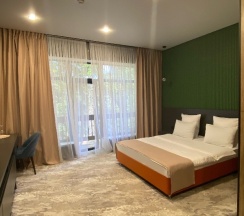 Современный отель, номера хорошие, все современно из окна вид на горы, вкусные завтраки. Есть чаны для купания, мангальная зона в открытом доступе. Отель супер всем рекомендую!