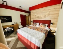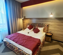 Отличный отель. Все понравилось. Проживания и номер люкс отличный. Приятный персонал. Связь с рестораном и с ресепшене через менеджеры. Шикарный вид. Удачное месторасположение, между пробок. Это позволяет не стоять в пробках и утром и вечером , когда едешь на гору или с горы после катания, что всегда приятно добраться до места быстрее . Тихое, нет того шума и суеты как на поляне. Бассейн и хамам в тему. Чисто и там и там. Завтрак хотелось бы больше разнообразие, вроде всё есть и вроде ничего нет. Качество еды отменное. Просто добавить, больше выбор. Спасибо обязательно вернёмся.