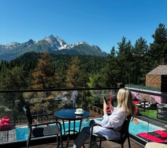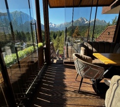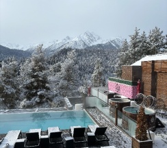Просто лучший отель, номера и вид из них, спа зона, ресторан, все на высшем уровне! Расположен близко к горнолыжному комплексу и есть трансфер, комната для инвентаря. Рекомендую и мы сюда обязательно вернемся