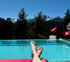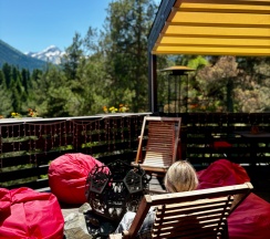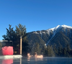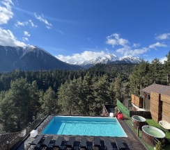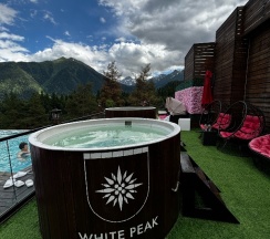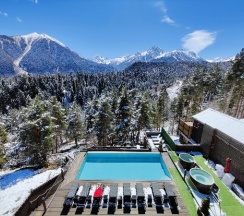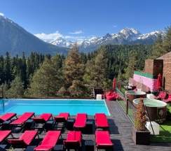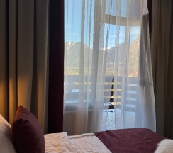 Очень, очень приличный отель. Понравилось всё. В номерах, самом отеле и на территории чисто. В номерах всё необходимое есть. Душевые принадлежности, полотенца, халаты, полотенца для спа, тапочки. Холодильник для напитков. Кофемашина, чайник, чашки, штопор, стаканы. Пакетики разного чая, капсулы кофе, сахар. По нашей просьбе нам принесли ортопедические подушки. У нас был номер с балконом. Прекраснейший вид на горы. На территории подогреваемый открытый бассейн. Чаны с холодной и горячей водой. Есть сауна и хамам. Тренажёрный зал. Зона отдыха с костром. Оборудованный спуск к реке. В отеле прекрасный ресторан. Европейская кухня. Готовят вкусно. Утром завтрак в этом же ресторане. Шведский стол. Много всего. Всё свежее и вкусное. Иногда пропадает сигнал Wi-Fi, но с этим жить можно. Будем стараться приезжать сюда регулярно.