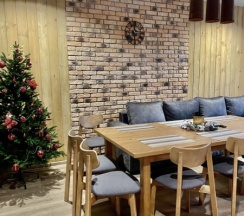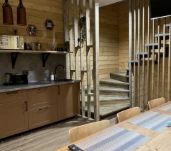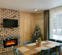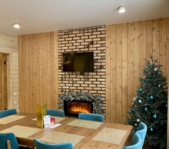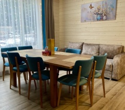 Сняли дом молодежный , 4 взрослых 5 детей. Комфортный просторный дом с тремя разделенными спальнями и сан узлами в каждой комнате . Большой просторный стол на нашу👍🏻кухня оснащена всем необходимым. Все новое , чистое . Территория большая с детскими игровыми , лобное место и горка на которой катались наши дети на ватрушках👍🏻👍🏻👍🏻👍🏻Хочется вернуться сюда и летом тоже