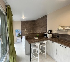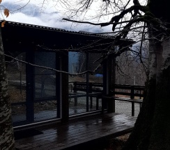 Первый раз побывали в этом замечательном месте и сразу влюбились в него. Тут есть всё для комфортного и эстетического наслаждения. Уютные домики с панорамными окнами и террасой скрытые в лесном массиве экологической зоны, окружённые величественными вершинами. За время пребывания мы насладились мелодичным пением птиц и чистотой горного воздуха. Удобное месторасположение для горнолыжников, рядом есть прокат снаряжения. Посетили банный комплекс и горячий чан. Как же здорово в вечернее время греться в чане и общаться в семейном кругу. На территории комплекса есть купольная беседка, детская площадка, качели, спортивный комплекс и чилаут зона, где можно разжечь костер. Интерьер номеров выполнен в едином стиле, все продуманно до мелочей. Очень уютно, чисто и красиво. Обязательно вернёмся ещё!!!
