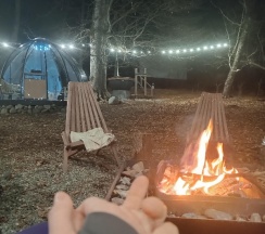 Уютная и ухоженная территория, все расположено так, как будто вы там одни. Есть купол, качели, место у костра, террасы с видом на годы. Сами домики небольшие, но в них есть все необходимое. Если вы любите спокойный, тихий отдых, однозначно рекомендую!