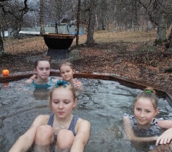 Отличная база,все остались очень довольны . все чисто комфортно, посуда есть,купель просто вещь.обалденный отдых приезжайте не пожалеете.все необходимое есть, тишина птички,вокруг горы снежные, очень красиво.