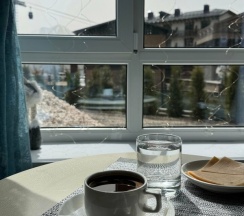 Очень удобное расположение. Две минуты ходьбы до северного подъемника. Отдельно хочется отметить приветливость и гостеприимство хозяев. Откликнулись на нашу просьбу и поставили в номер дополнительное кресло, чтобы мы могли разместиться с двумя детьми. Вкусные завтраки. Чисто в номере. Рекомендую.