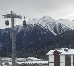 Расположен очень удачно, рядом с центром, до которого можно дойти за пару минут или доехать на канатке. При этом шум центра здесь уже не слышен, поэтому можно забыть о суете и погрузиться в спокойствие. За окном открываются потрясающие виды на горы Кавказского хребта.