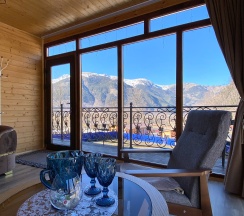 Домик в горах расположен на самой высокой точке ущелья и оттуда открывается просто невероятный вид на горы и окрестности! Ни одна камера не передаст этой мощи и красоты! Одно удовольствие там просыпаться, гулять, или качаться на качеле с чаем. Если вам нужен уровень вашего пребывания в горах намного выше того, что предлагают на каждом углу, то вам сюда. Возвращаешься с активного дня в горных маршрутах, а тут тебя ждёт номер с шикарным видом. Ну красота!!!!