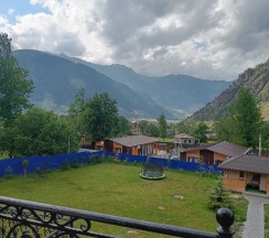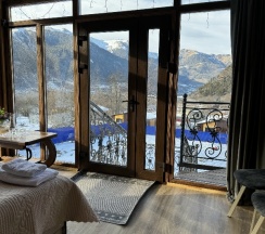 Домик в горах расположен на самой высокой точке ущелья и оттуда открывается просто невероятный вид на горы и окрестности! Ни одна камера не передаст этой мощи и красоты! Одно удовольствие там просыпаться, гулять, или качаться на качеле с чаем. Если вам нужен уровень вашего пребывания в горах намного выше того, что предлагают на каждом углу, то вам сюда. Возвращаешься с активного дня в горных маршрутах, а тут тебя ждёт номер с шикарным видом. Ну красота!!!!