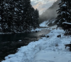 Отдыхали с мужем в декабре , очень красивое и уютное теплое место, зимой в домике как в бане . Очень красивые пейзажи с окна домика и на выходе , водичка рядом прям в самое сердечко . Кто еще не был в этом месте советую посетить ( зимой особая атмосфера ) ♥️