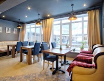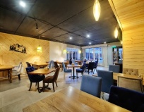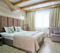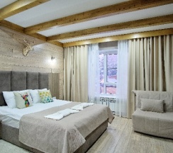 Отель соответствует своему классу. Если вы без особых претензий, вам понравится. Чисто, красиво оформлен, атмосферно. У нас был номер стандарт на 3 этаже. В номере нет холодильника. Но есть между этажами, если необходимо. Халатов тоже нет. Полотенца меняли исправно. Персонал отзывчивый. Расположение отличное. На склоны ездили на такси, нам было так удобнее. Сели у подъезда, вышли у горы. Сноуборды возили с собой. Есть лыжная комната для просушки снаряжения. В самом отеле есть кафе. Есть много кафешек рядом. В общем, отличное место, рекомендую