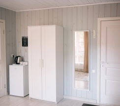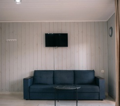 Жили 3-6 января в номере √5. За 63тр. Одна комната с большой кроватью и раскладывающимся диваном. Дом тёплый, ванная чистая, вода горячая, душевая есть. Маленький холодильник (очень тихо работает), телевизор показывает 20 основных каналов, Wi-Fi хороший, были полотенца (банное и маленькое), халаты, тапочки, однораз. з/щётки с з/пастой, шампань, гель д/душа, фен, чайник, 3 чашки с блюдцами. Есть общая сауна с открытым тёплым бассейном. Приятно было отдохнуть после гор. Персонал доброжелательный.