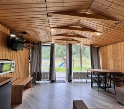 Сказочное, тихое, уютное место вдали поселка и его шума. Если хотите по настоящему отдохнуть в дикой природе Архыза в окружении леса и гор, то вам однозначно сюда! В домике все необходимое, самое приятное это газовый котел, а не бойлер! Есть детская площадка, лобное место с качелями и кострищем, банька, беседки с мангалами, гамак. Очень много зелени, вокруг базы лес - там пасутся коровки и лошадки, очень атмосферно! Были в ноябре и июле. Сюда приезжаем за тишиной и природой....