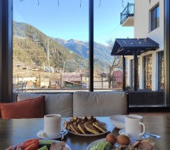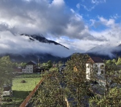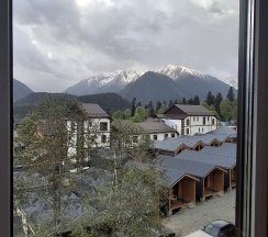 Отличный отель! Долго искали в интернете что-то приличное за разумные деньги- это тот самый случай! Качественный ремонт, продуманный до мелочей дизайн интерьера, удобные кровати, ванная комната без нареканий, чайные принадлежности, тв и wifi- всё есть и всё работает! Уборка каждый день, белоснежные полотенца каждый день! Трансфер до глц, исключительно вкусные завтраки(шведский стол) стеклянном кафе с видом на горы. До центра прогулочным шагом 10 минут. Однозначно 5 звезд, рекомендую к посещению 👍