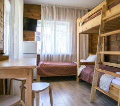 Не понравилось: местоположение не очень. добираться до горы только на такси за 500. либо идти до шаттла 10-15 минут, что с оборудованием не очень удобно, особенно с горы. не хватает шкафов для одежды.