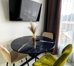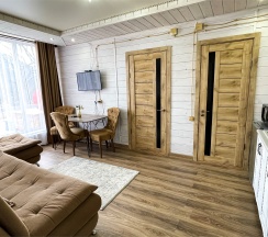 2х комнатные апартаменты с панорамными окнами покорят Вас не только особой атмосферой, стильным дизайном, но и живописными видами. В отеле Дион-8 номеров, в каждом из которых наши гости смогут насладиться сказочной природой Архыза в любое время года. Каждый номер оснащен кухонной зоной, в которой имеется электрическая плита, холодильник, микроволновая печь, раковина и вся необходимая посуда.