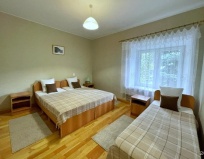 Понравилось: Очень уютный дом,есть кухня, столовая. На каждом этаже гостиные, где можно посидеть в креслах, пообщаться. В доме очень тепло, вода всегда горячая, хватает на всех. Санузлы на третьем этаже хоть и не имеют входа из комнат, расположены рядом с каждым номером. Кровати добротные, нескрипучие. Удобная сушилка для вещей, обуви. Вокруг дачи огромный участок, фактически кусок леса, с елями. Мы отдыхали зимой поэтому особо не получилось погулять по участку, но, после бронирования я заглядывал сюда осенью, я был поражен красотой участка, скамеечки, медведи, беседки... Под елями росли грибы. В общем отдыхать можно и душой и телом в любое время года. Спасибо