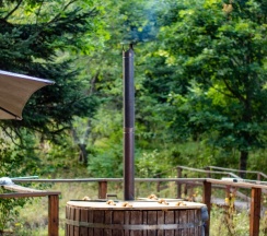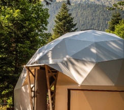 Мы жили в августе в куполе с баней фурако (каждый день проживания нам ее подогревали и даже меняли воду)