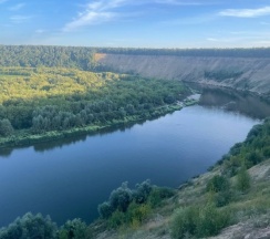 Добрались очень быстро, в шаговой доступности река с пляжем и высокий берега с прекрасным видом!