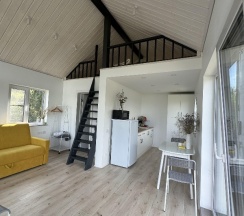 Были семьей, с 2 детьми, очень уютный домик - панарамные окна,большое спальное место на верху, комфортный диван, телевизор (мы брали с собой флешку с фильмом) кухня со всем необходимым,просторный и чистый санузел, хороший напор воды (для обладателей длинных волос это важно)
