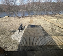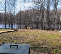 На пару домиков имеется выход к воде - небольшой пирс. На улице у каждого домика костровая зона: мангал и место для костра. Также есть стульчики, лежаки, столики.