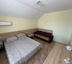 Пятиместный двухкомнатный люкс со всеми удобствами и большой лоджией. Это просторный, светлый и уютный двухкомнатный номер.