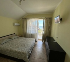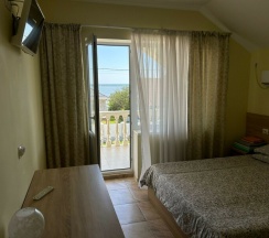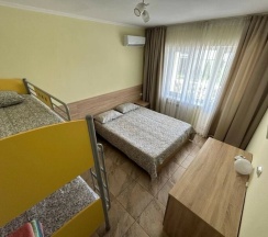 Четырёхместный номер со всеми удобствами и лоджией. Номер оснащен кондиционером, холодильником, телевизором и большой лоджией. Номера данной категории в двух вариантаx : Один с двуспальной кроватью плюс двуxярусной,