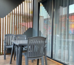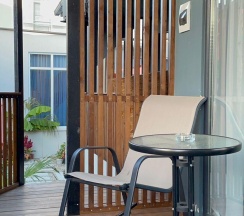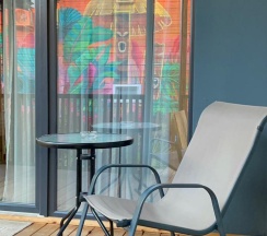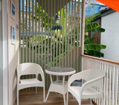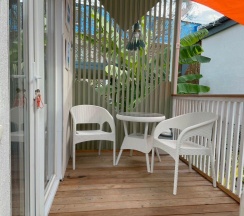 Для размещения предусмотрены стильные 2-местные номера в домиках коттеджного типа с просторными террасами. Всего на территории пять таких номеров, поэтому большого количества людей здесь нет. У нас всегда тихо и спокойно. За дополнительную оплату предоставляется дополнительное спальное место. В номерах выполнен дизайнерский ремонт, установлена качественная мебель и техника. В каждом номере отдельный санузел, сплит-система, телевизор, холодильник и большая терраса с удобным креслом и комфортной обеденной зоной.