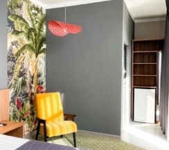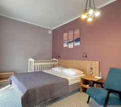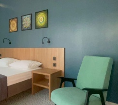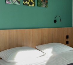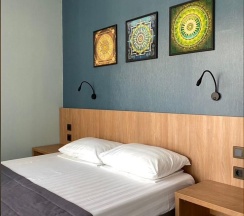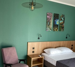Для размещения предусмотрены стильные 2-местные комнаты в доме коттеджного типа. Всего жилой фонд располагает четырьмя комнатами, поэтому большого наплыва людей здесь нет. При необходимости за доплату предоставляется дополнительное спальное место. В комнатах выполнен дизайнерский ремонт, установлена качественная мебель и техника. В каждой комнате отдельный санузел, сплит-система, телевизор, холодильник и большая терраса с удобными стульями и столиками.