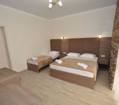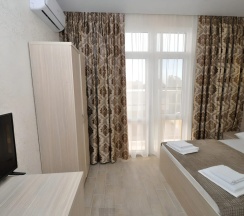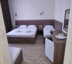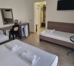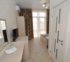 Отличный отель, чистота идеальная везде, есть бассейн, всё очень дружелюбно, есть отличный бар с вкуснейшим шашлыком, кальяном и множеством других коктейлей и напитков, собственная парковка для автомобиля отдыхающего. Отель свежий, всё как новое, в номере есть всё что нужно. Рекомендую на все 100, не ошибётесь. Ни разу не возникало сомнений правильно ли выбрали отель. Рядом много столовых с очень недорогой и вкусной едой, картинг, аквапарк, пляж, большой парк аттракционов, пешеходная улица с множеством интересностей.