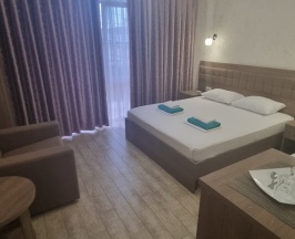 Хозяева очень гостеприимные. Предлагают кроватку для малышей, для нас это было спасение, тк сын привык засыпать в такой кроватке. Есть не большой балкон, но мы в основном сидели на террасе у отеля. Отлично, что есть парковка для а/м. Бассейн полюбился детям, тк на море часто волны.