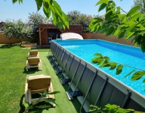 Бассейн во дворе, беседка, качели, мангал.