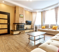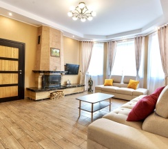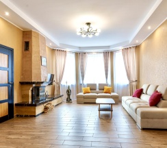 Просторная гостиная 40 кв.м. для вечеринок и торжеств, подходит для мероприятий до 20 гостей, камин, полностью оборудованная кухня, 2 сан. узла, 4 спальни.