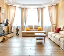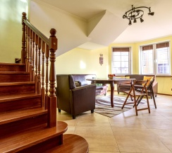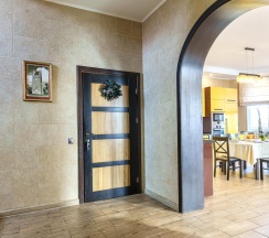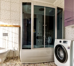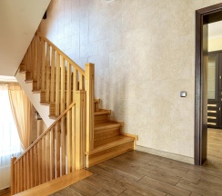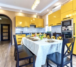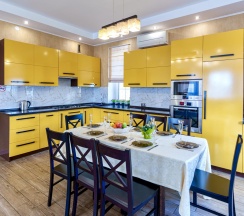 В доме сделан дизайнерский ремонт в классическом стиле, качественная мебель и техника. Везде теплые полы. На кухне посудомойка, кофемашина, любая посуда в достаточном количестве. Постельное белье, полотенца, чай и кофе, мыло, шампунь, гель для душа - предоставляются. Есть стиральная машина и гладильные принадлежности.