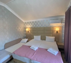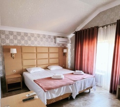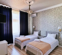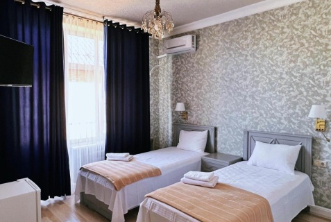 В нашем доме 5 номеров данной категории.В комнате есть все необходимое для комфортного проживания: две односпальные кровати, кондиционер, смарт тв, шкаф, рабочий стол, мини-холодильник, собственная ванная комната со всеми необходимыми туалетными принадлежностями, комнаты отличаются только отделкой разной цветовой гаммы обоев и портьеров!