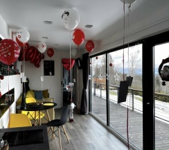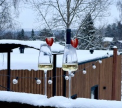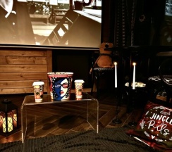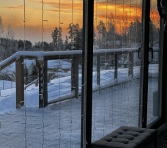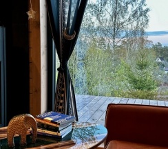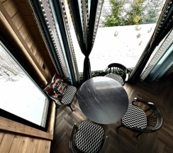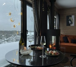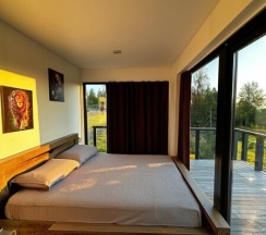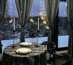 Домик с панорамными окнами, стеклянным камином и проектором.