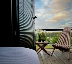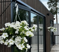 Площадь домика 30 м². Также у каждого домика есть своя терраса 26 кв.