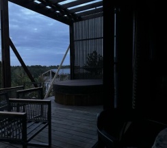 У домика имеется своя собственная терраса, мангальная зона (патио) с шезлонгами , костровой чашей для любителей погреться у костра и подсветкой из лофт гирлянды для более романтичного времяпровождения.