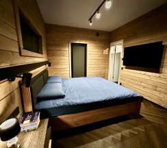 Спальная комната: кровать 160/200 с ортопедическими подушками и матрасом, постельное белье полотенца на каждого гостя.