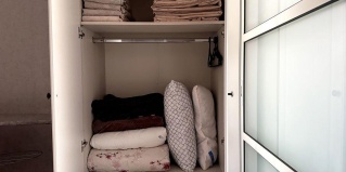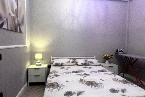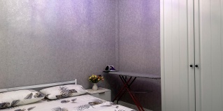 * Спальня оборудована двуспальной кроватью, шкафом, гладильной доской и утюгом.