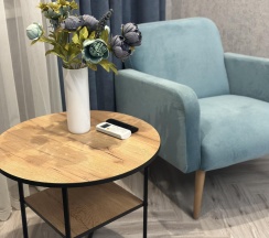 * В гостиной вас ждёт удобный диван, а также зона отдыха с двумя креслами и журнальным столиком.