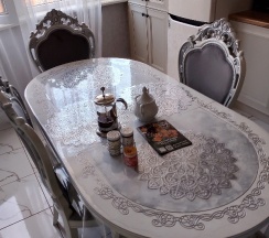 Приятная новая посуда, свежее белье.
