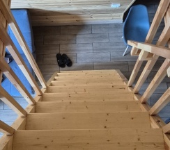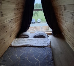 Во-вторых - 4 А-фрейма на выбор, 4 зоны с баней, чаном с подогревом. И все сделано с любовью и из экологичного сырья. Внутри все очень чисто, постельное ,полотенца. Вид из любого окна на лес, крепкие деревянные лестницы и перила, чистые санузлы, на кухонной зоне все необходимое для качественного отдыха - с собой ничего не надо везти. Сотрудники клуба все по согласованному времени предоставляют, баня готова когда надо, чан с подогревом это место для бесед под звездами, с бокалом любимого напитка... Обязательно, обязательно в этот вайб.