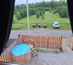 Очень уютный домик, классная сауна, есть чан с водой в котором очень атмосферно провели вечер. Есть где прогуляться, а также активно провести отдых на квадроциклах. Даже если раньше никогда не ездили, инструктор поддерживал и следил. Поездка запомнилась надолго, спасибо!!!!