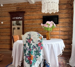 Очень гостеприимная хозяйка,встретила в удобное для нас время,выезд тоже произошёл когда нам было удобно ранним утром,в доме нас ждал комплимент - блюдо с фруктами,очень приятно было. Подсказала,где поесть.Очень нам понравился дом, как будто возвращение в детство в деревню к дедушке, эта печь, всё эти чудесные аутентичные детали со вкусом подобранные😍 тарелочки с гусями, сплетённые абажуры, короче всё волшебно, даже скрипящая толстая деревянная дверь в кухню как в детстве в деревне в сенях добавляет уюта😍! Красивое постельное бельё,удобные кровати,мягчайшие полотенца, всё необходимое есть для удобства, а главное очень чисто!