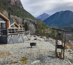 Отличное место с классными видами, снимали А-фрейм номер 1 самый четкий вид. Домик классный теплый и просторный. Есть мангал с навесом( дождь не страшен😂 ). Кстати есть казан тоже у каждого мангала. Домики прямо у трассы, тоже очень удобно. Всем рекомендую, все классно, хозяева адекватные гостеприимные люди, спасибо им еще раз