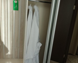 Номер оборудован всем необходимым для комфортного проживания: двуспальная кровать, кондиционер, чайник, шкаф, телевизор, собственная ванная комната и туалет.