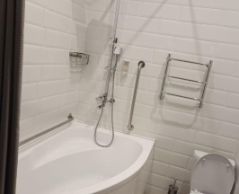 Номер оборудован всем необходимым для комфортного проживания: двуспальная кровать, кондиционер, чайник, шкаф, телевизор, рабочая зона, собственная ванная комната и туалет.