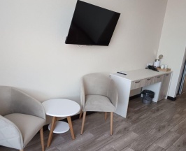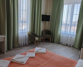 Номер оборудован всем необходимым для комфортного проживания: двуспальная кровать, кондиционер, диван, чайник, шкаф, телевизор, собственная ванная комната и туалет.